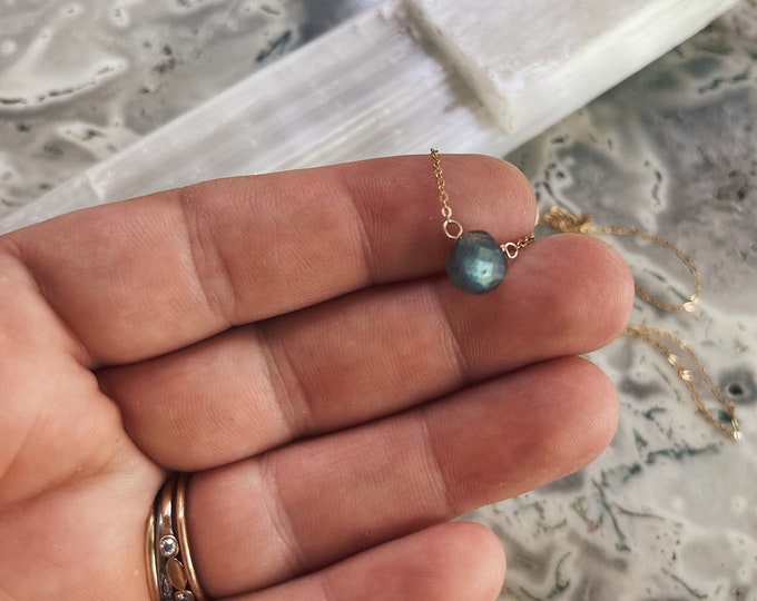 Mini Labradorite Drop Necklace: Galaxy Gemstone, Layering Necklace